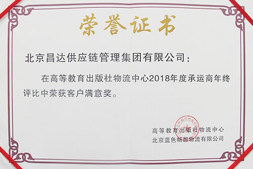 2019年4月底,昌達(dá)集團(tuán)參加了高等教育出版社2018年度運(yùn)輸服務(wù)商評選,作為物流行業(yè)的標(biāo)桿企業(yè),昌達(dá)集團(tuán)憑借一直以來的優(yōu)質(zhì)服務(wù)而備受認(rèn)可,一舉斬獲“2018年度優(yōu)秀承運(yùn)商”和“客戶滿意獎”兩項(xiàng)獎項(xiàng)。