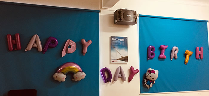 伴隨著主持人熱情洋溢的開場白,生日會正式開始了,大家一起點蠟燭、唱生日歌、吹蠟燭、切生日蛋糕等等,給大家營造了一個溫情濃濃且令人難忘的慶生會。