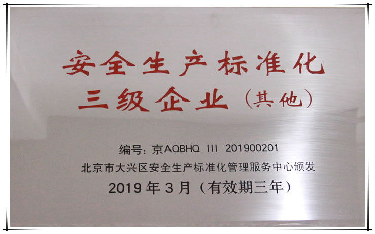 近日,我公司正式收到《安全生產(chǎn)標(biāo)準(zhǔn)化三級企業(yè)》證書,此證書是由北京市安全生產(chǎn)監(jiān)督管理局頒發(fā),國家安全生產(chǎn)監(jiān)督管理總局監(jiān)制,此次安全生產(chǎn)標(biāo)準(zhǔn)化三級證書的取得,標(biāo)志著昌達集團的安全生產(chǎn)管理水平得到權(quán)威認可,躍上一個新臺階,安全管理工作更趨于標(biāo)準(zhǔn)化,安全基礎(chǔ)更加完善和堅固。