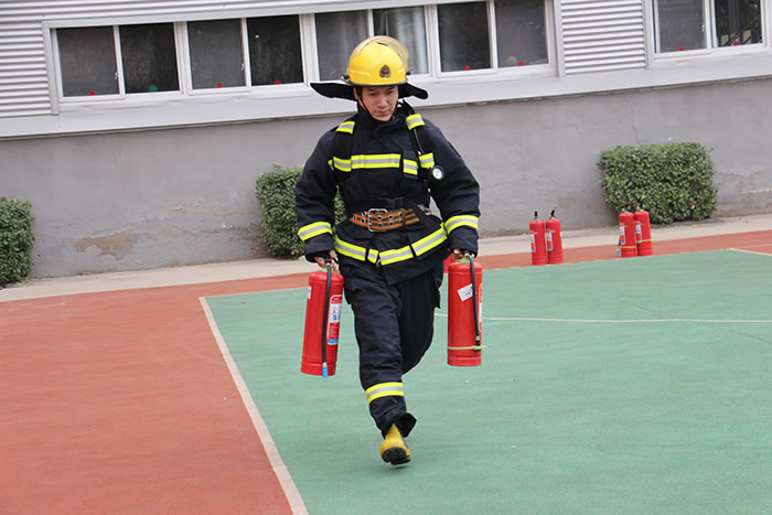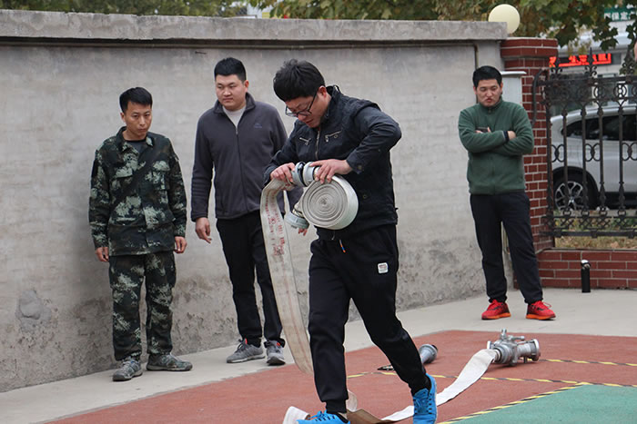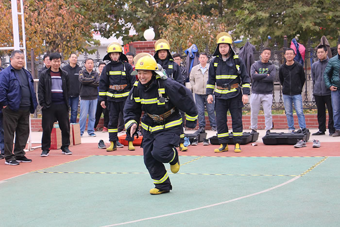 本次比賽分為原地著消防防護(hù)服、一人兩盤水帶連接操、40米負(fù)重跑、消火栓連接水帶出水操4個(gè)比賽項(xiàng)目,比賽遵守安全第一,比賽第二的原則,旨在通過競技比拼的方式,進(jìn)一步提高大家的專業(yè)技能及實(shí)踐水平。