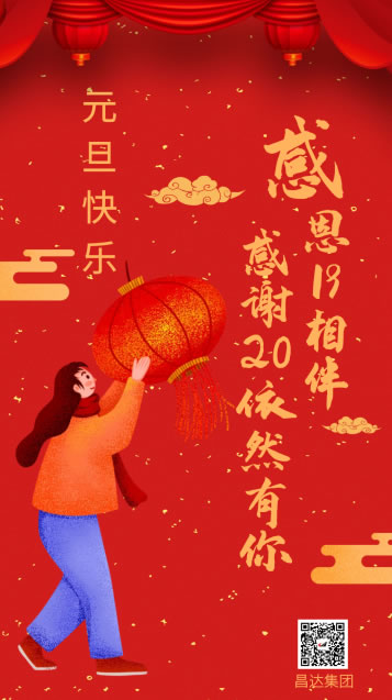 2020年元旦將至,昌達(dá)集團(tuán)攜全體伙伴,向廣大客戶伙伴們致以誠摯的節(jié)日祝福,感謝您一直以來對昌達(dá)集團(tuán)的信賴與支持!祝您元旦快樂,萬事如意!