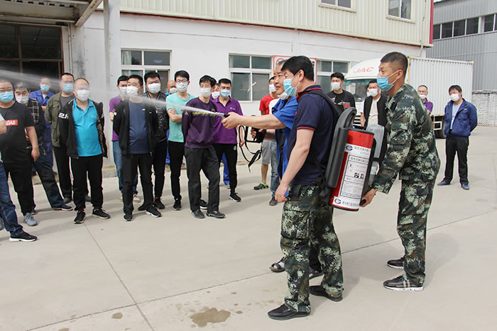 消防安全需要每個人的積極參與,才能將安全隱患降低到最小?;顒幼詈螅R隊長組織參訓員工在廠區(qū)內(nèi)現(xiàn)場操作演示了如何正確使用肩背式水霧滅火器撲救初起火災,大家輪番上陣,切身體驗。