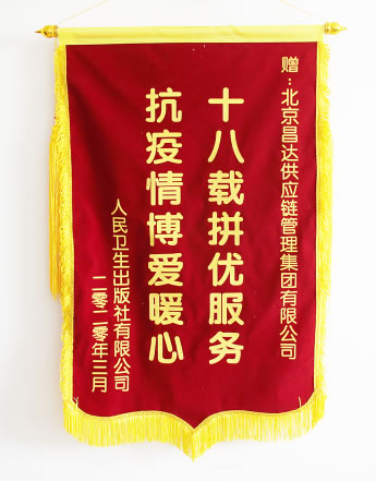 近日,昌達(dá)集團(tuán)收到人民衛(wèi)生出版社送來(lái)的印有“抗疫情博愛暖心,十八載拼優(yōu)服務(wù)”字樣的錦旗,并對(duì)昌達(dá)集團(tuán)在抗擊疫情期間所做出的優(yōu)質(zhì)保障工作和鼎力相助表示感謝。