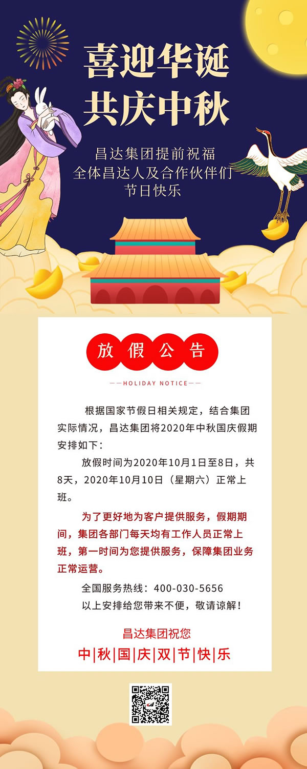 昌達集團中秋國慶假期放假公告