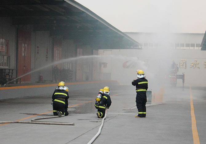 活動現(xiàn)場組織了消防滅火演練,通過模擬火情,昌達(dá)消防隊隊員與外研社消防隊員協(xié)同作戰(zhàn),迅速組織展開現(xiàn)場滅火,消防車出動→連接水帶→出水,“火勢”很快得到有效控制。整個演練過程流暢,環(huán)環(huán)相扣,既為全體客戶代表帶來了一場近距離的滅火”體驗課”,又充分展示了昌達(dá)消防精湛嫻熟的業(yè)務(wù)技能。
