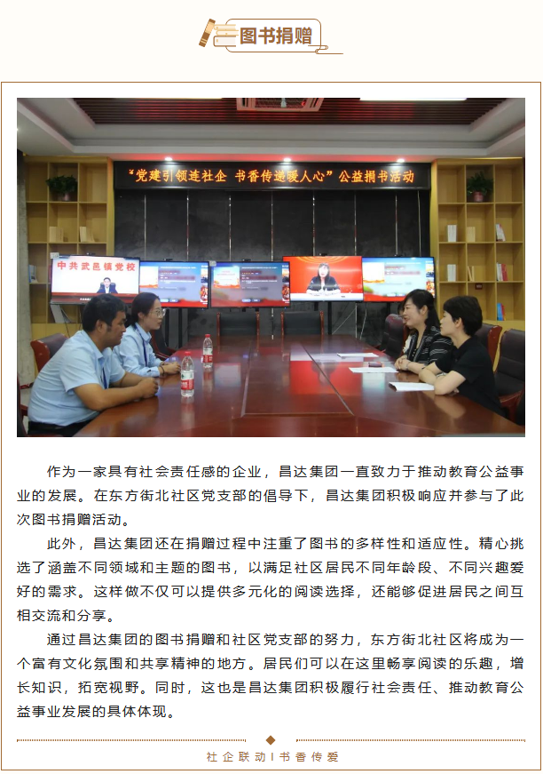 在昌達集團持續(xù)關注教育事業(yè)發(fā)展和回饋社會的初衷下,一場名為“黨建引領連社區(qū),書香傳遞暖人心”的圖書捐贈活動再度啟航。