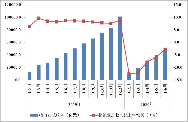 圖 3 2019-2020年物流業(yè)總收入及增長(zhǎng)情況